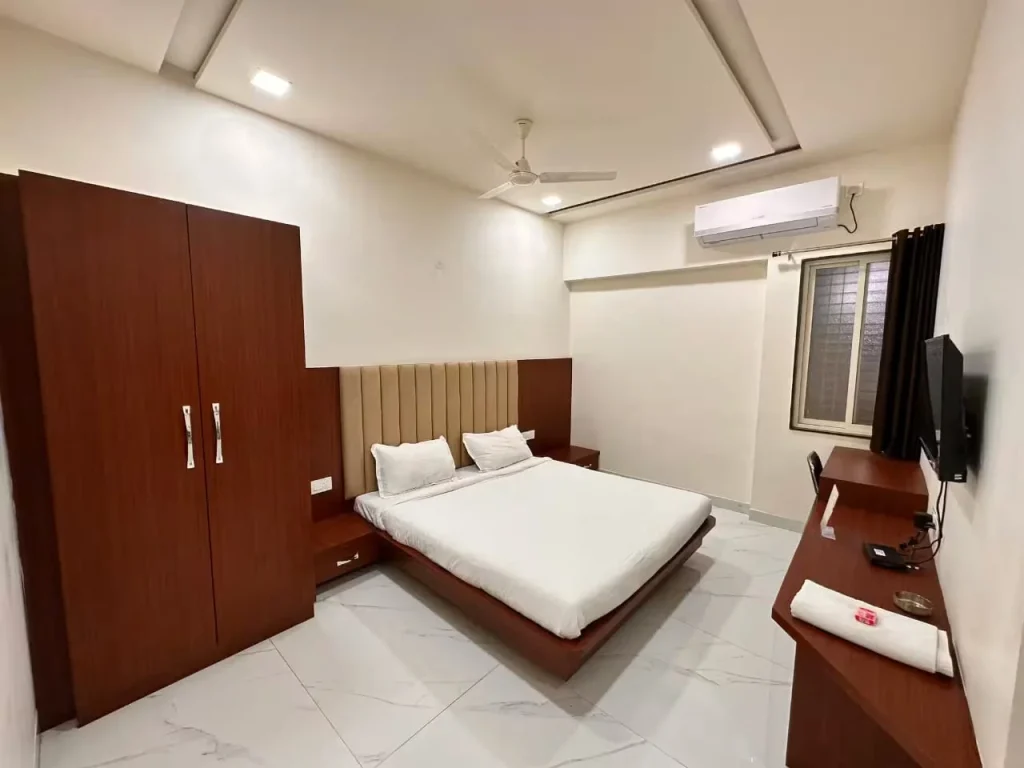 Our hotel offers clean and comfortable rooms in Trimbak designed for travelers visiting the holy town. Whether you are planning a short visit or a peaceful stay in Trimbak, our rooms provide essential amenities, hygienic spaces, and a relaxing environment. With an easy Trimbak online room booking system, guests can quickly book hotel in Trimbak and enjoy a comfortable hotel near Trimbak for their travel plans.